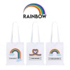 This Stylish 5oz white bag with long 70cm reinforced handles is able to hold up to 7kg. Made from 100% Cotton this bag includes a full colour print to 1 side as standard and a choice of 3 designs -Rainbow, Cloud or Heart.