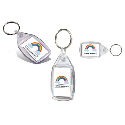 Made from stay-clear TM plastic it includes a metal split keyring & digital printed paper insert that can be seen on both sides. This keyring has 3 bright & bold designs to choose from Rainbow, Cloud or Heart please refer to the artwork template.