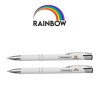 This stunning pen has a sleek white aluminium body with a rubber soft-touch grip, a blue ink jumbo cartridge, and silver clip, rings, and tip. You can choose from two vibrant designs: Rainbow or Heart and customise it with a full-colour print to 1 position.